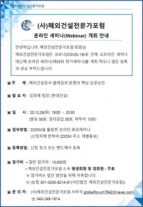 제 53회 해외건설전문가포럼 페이지 정보 작성자 최고관리자 댓글 0건 조회 291회 작성일 23-04-17 12:00 목록 답변 글쓰기 본문 제 53회 해외건설전문가포럼 이전글제 54회 해외건설전문가포럼 23.04.17 다음글제 52회 해외건설전문가포럼 22.07.29 댓글 0 댓글목록 등록된 댓글이 없습니다.