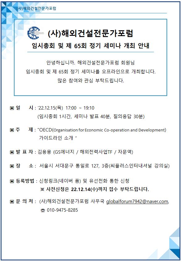 제 65회 해외건설전문가포럼 페이지 정보 작성자 최고관리자 댓글 0건 조회 265회 작성일 23-04-17 12:16 목록 답변 글쓰기 본문 제 65회 해외건설전문가포럼 이전글제 66회 해외건설전문가포럼 23.04.17 다음글제 64회 해외건설전문가포럼 23.04.17 댓글 0 댓글목록 등록된 댓글이 없습니다.